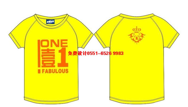 下面這款黃色的一班班服,采用黃色短袖文化衫,前后印上ONE 壹,衣服后領(lǐng)印上皇冠和班徽。