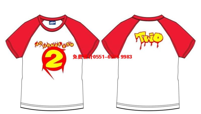 這款紅色插肩袖班服前面是紅色的圖案印刷2旋風(fēng),后面是大寫的TWO,流墨的文字效果。