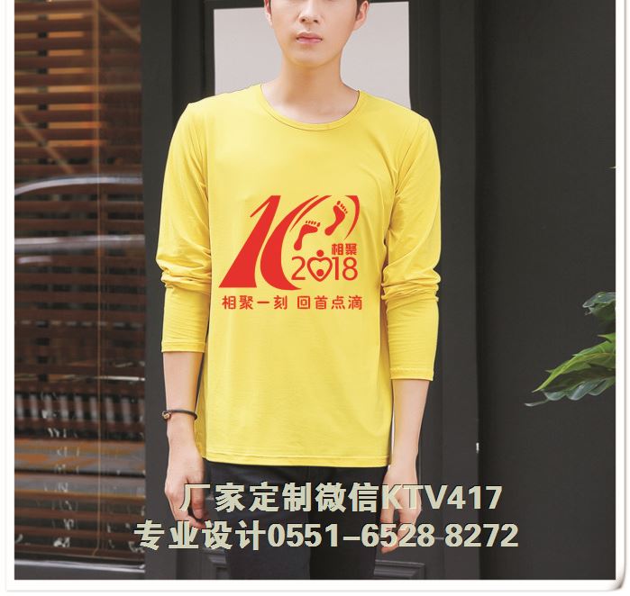 黃色長袖紀念衫畢業(yè)10年,秋冬聚會服裝款式。