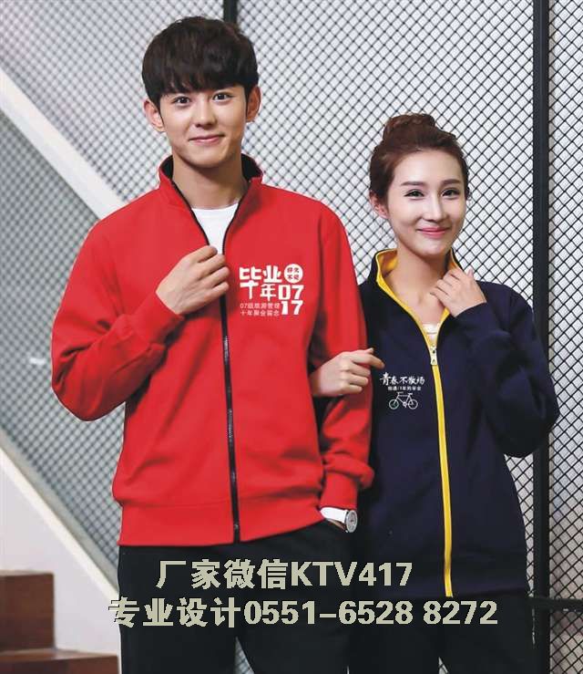 畢業(yè)10年同學會服裝冬季,紅色聚會衛(wèi)衣圖片,紅色的立領(lǐng)衛(wèi)衣,左胸印上畢業(yè)10年,2007-2017.青春不散場。時代元素自行車。