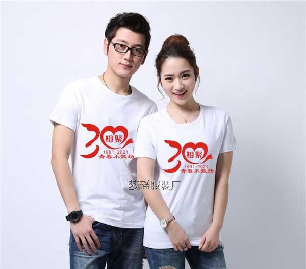 針對畢業(yè)同學聚會t恤圖案設(shè)計圖片,對于30年的聚會,聚會人員都是50多歲的人了,大花大紫的文化衫顏色已經(jīng)不適合,對于文化衫顏色的選擇大多數(shù)是白的為主,紅色的文化衫為輔。也有做藍色的,但相對較少。