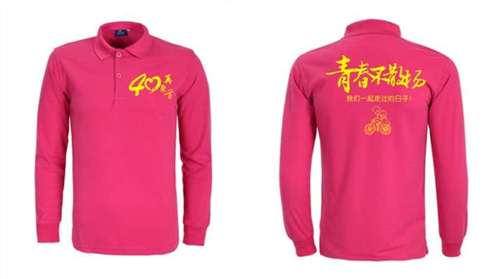 只要設(shè)計(jì)的時(shí)候控制印字面積大小就可以了。印字設(shè)計(jì)相對來說簡單。對于定制紅色T恤衫的同學(xué)們,印字顏色推薦為白色或者黃色。白色的印字在紅色的服裝上,很顯眼。黃色的印字也是可以的,黃色的印在紅色的服裝上,顯喜慶,就像是婚慶喜對一樣的色彩效果。聚會是件喜事,喜慶的同學(xué)聚會。