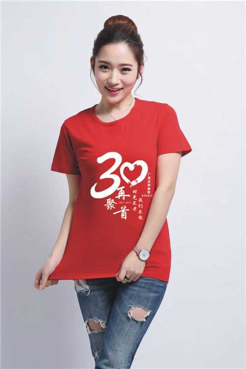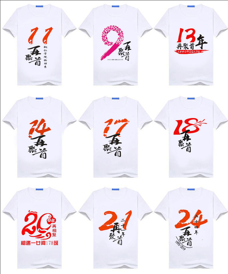 圓領素色做的衣服同學們做的最多,簡單大方,簡潔端正。一般都是白色的衣服,紅色衣服,白色的衣服同學們穿著顯白,年齡大的穿著也顯年輕,印字明顯。紅色對國人來說,是喜慶的顏色,可活躍現(xiàn)場聚會氣氛,紅紅火火,俗稱中國紅。紅衣服印刷黃色的圖案,很喜慶。聚會本身就是一件喜慶的事。